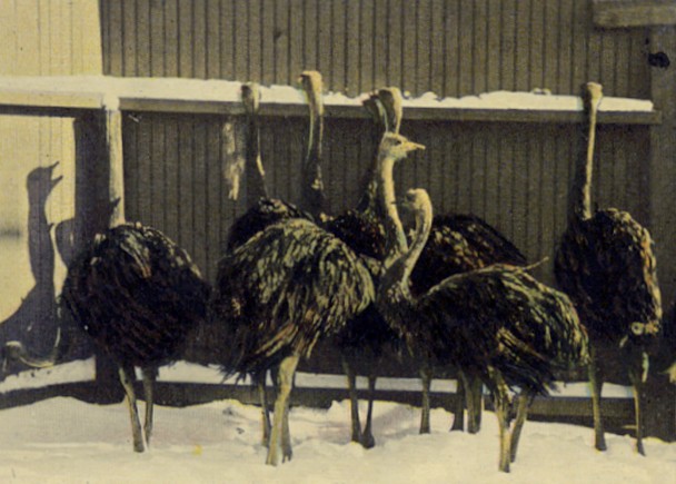 Six months old ostriches eating snow, January 13, 1912. 14 degrees below zero the hour this was taken and 30 degrees below the same morning. If ostriches in Bloomsburg is a surprise to you, check out Bob Dunkelberger’s new book about William Hile and the Great Columbia County Ostrich Experiment available on page five of our Shop/Publications tab.